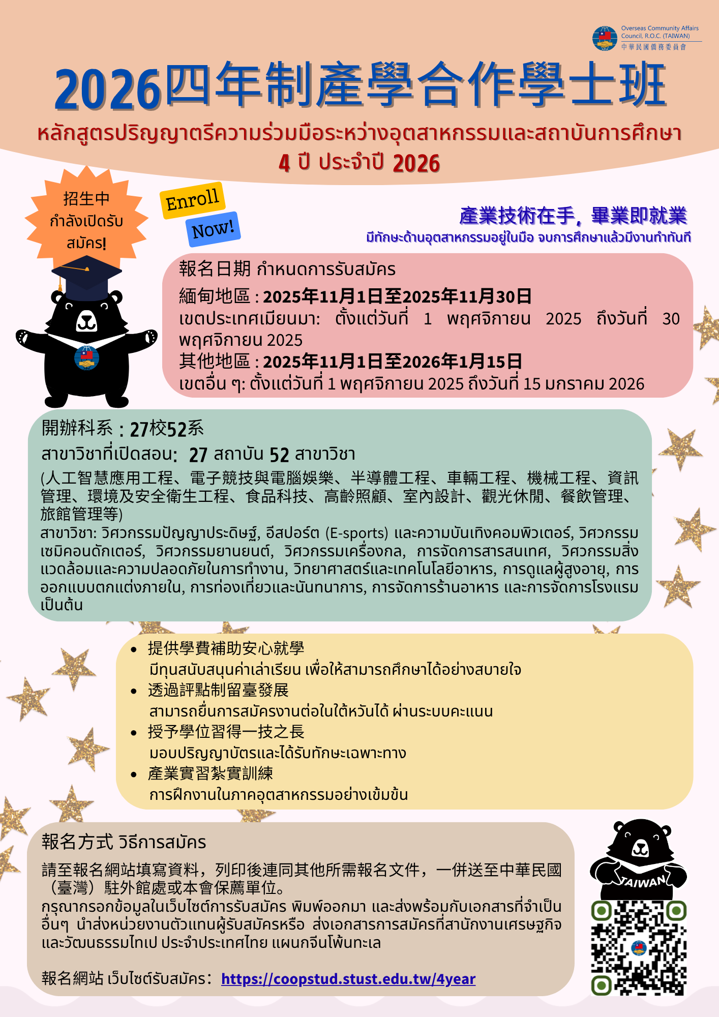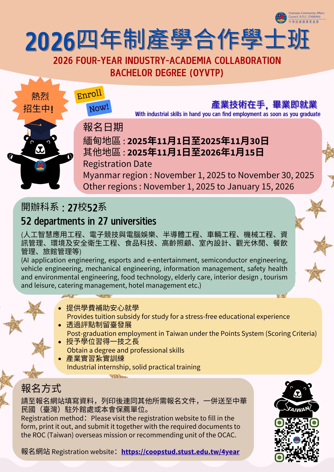 (二)申請期間:2025年11月1日至2025年11月30日(緬甸地區於2025年11月30日截止、其他地區於2026年1月15日截止)